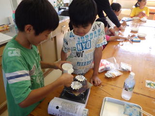 午後からはクラブ活動でスーパーボールとべっこう飴を作りました。