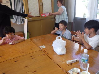 修学旅行に6年生が言っている間、分校の子どもたちは芋でおやつ作りをしたようです。