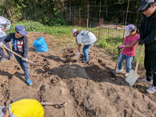 今日は芋ほりをしました。今年は小さな芋が多く、