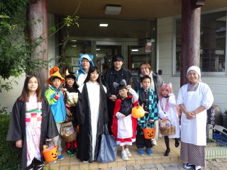 子どもたちは仮装をしてお菓子をもらいに来ました!