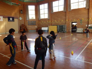 「思ったより高い・・・」と不安げな反応。練習あるのみ!と高学年が